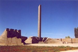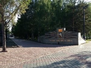 7 мая 1975 года на Набережной Иртыша (ныне Набережная им. Е. П. Славского) напротив слияния рек Ульбы и Иртыша началось сооружение памятного монумента в честь воинов-восточноказахстанцев, погибших в годы Великой Отечественной войны. Открытие памятника состоялось в мае 1995 года. Над символическим захоронением – курганом возвышается 30-метровая стела, облицованная черным мрамором и символизирующая Победу. От кургана начинается площадь, способная вместить три-четыре тысяч человек. У подножия обелиска горит вечный огонь. На гранитных мемориальных стенах высечены имена восточноказахстанцев, павших в годы войны. Руководителем проекта был ведущий архитектор Ульбинского проектно-конструкторского института УМЗ Станислав Христофоров. Оформление памятника выполнил член Союза художников СССР, скульптор В. Рапопорт.