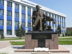 Памятник Сарсену Аманжолову установлен возле Восточно-Казахстанского государственного университета, которому в 2003 году присвоили имя Сарсена Аманжолова. Сарсен Аманжолов был языковедом-тюркологом, членом-корреспондентом Академии наук Казахской ССР, одним из основателей и руководителей Казахского научно-исследовательского института национальной культуры, одним из основоположников казахского языкознания, доктором филологических наук, профессором. Модель, возвышающаяся, почти на пять метров, выполнена из бронзы по проекту известных казахстанских архитекторов Е. А. Сергебаева и Б. А. Абишева. Памятник представляет собой сидящего в кресле Сарсена Аманжолова, в ногах которого лежит раскрытая книга. В 2008 году памятник Сарсену Аманжоловичу Аманжолову был внесен в список памятников истории и культуры Казахстана.