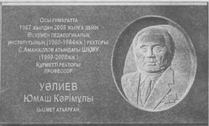 В рамках республиканской научно-практической конференции «Уәлиев оқулары-2010», тема которой — «Развитие системы образования Казахстана в контексте Болонского процесса», прошла торжественная церемония открытия мемориальной доски Юмашу Каримовичу Увалиеву, организатору высшего образования в Казахстане, бывшему ректору Усть-Каменогорского педагогического института (УКПИ), на базе которого был создан Восточно-Казахстанский государственный университет им. С. Аманжолова. Юмаш Каримович внес огромный вклад в становление старейшего вуза на востоке страны. Он возглавлял УКПИ почти четверть века — больше, чем кто-либо из ректоров высших учебных заведений страны. За это время периферийный вуз, благодаря целеустремленному долголетнему труду его ректора, стал одним из ведущих институтов Казахстана. В 1975 году вошел в число вузов первой категории, в 1982 году — в десятку лучших педвузов СССР. Был введен главный учебный корпус, построено четыре студенческих общежития, жилой дом для преподавательского состава, другие инфраструктурные объекты. Много внимания уделялось подготовке учительских кадров, открывались новые факультеты, налаживались научно-профессиональные связи с ведущими вузами Советского Союза. В 1991 году УКПИ стал первым университетом суверенного Казахстана после обретения Республикой независимости.