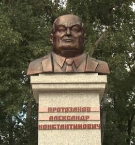 А.К.Протазанов 1969 жылдың қыркүйегінен бастап 1984 жылға дейін Шығыс Қазақстанда обкомның бірінші хатшысы болған. Ол облысымыз бен қаламыздың дамуына өлшеусіз үлес қосқан қайраткер. Оның есімі Ертіс жағалауының құрылысымен, Өскемендегі әлеуметтік қамсыздандыру нысандарының, мектептердің, балабақшалардың құрылыстарымен байланысты. Ол қаланың азық-түлік мәселесін шешті. Оның басшылығымен жылыжай кешені мен құс фабрикалары пайдалануға берілді. Александр Константиновичтің есімін мыңдаған шығысқазақстандықтар еш ұмытпақ емес. Протазановқа қойылған ескерткіш “Үлбі” ОМҮ алаңында орнатылған. Ескерткіш авторы – Владимир Самойлов.