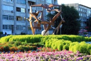 Мұнда геометриялық формалар – квадрат пен үшбұрыштың, үлкен жазықтықтар мен кіші жазықтықтардың арақатынасы осындай қызықты нысанға айналған. Пайдаланған материалдар темір, тас, шыны болды. Мүсін Виноградов және Карбышев көшелерінің қиылысында орналасқан.