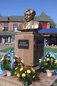 Ұлы Отан соғысындағы Жеңістің 65 жылдығына орай Қазақстанның Халық қаһарманы, Халықаралық Фадеев атындағы сыйлықтың лауреаты, көрнекті жазушы, Ұлы Отан соғысының ержүрек батыры, әйгілі партизан, көзі тірісінде аты аңызға айналған халқымыздың қайталанбас біртуар даңқты перзенті Қасым Қайсеновқа ескерткіш орнатылды. Орнату идеясы қалалық ақсақалдар кеңесі, соғыс ардагерлері, сондай-ақ облыстық украин, орыс және белорус этномәдени орталықтарына тиесілі. Ескерткіш батырдың аты жазылған тік бұрышты тұғырға орнатылған Қасым Қайсеновтың қола мүсіні болып табылады.
